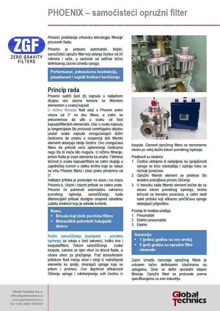 Phoenix i EZ Clean su potpuno automatski, linijski, samočisteći opružni filteri koji uklanjaju čestice od 20 mikrona i veće, a u zavisosti od veličine tačno definisanog zazora između opruga.
